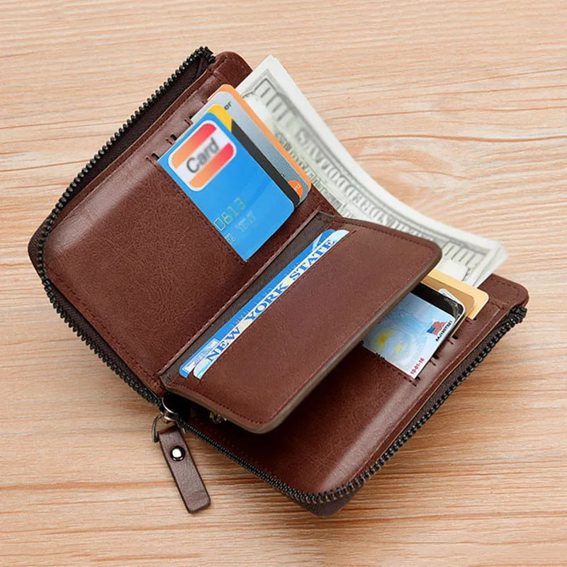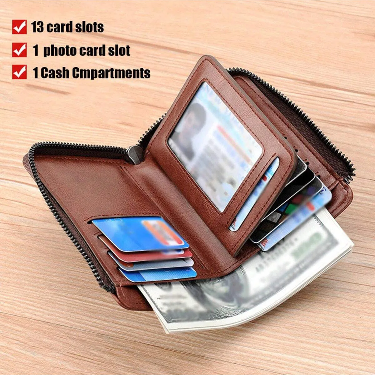 Men's Leather Wallet RFID Card Holder Man Money Bag Purse Zipper Wallet for Men